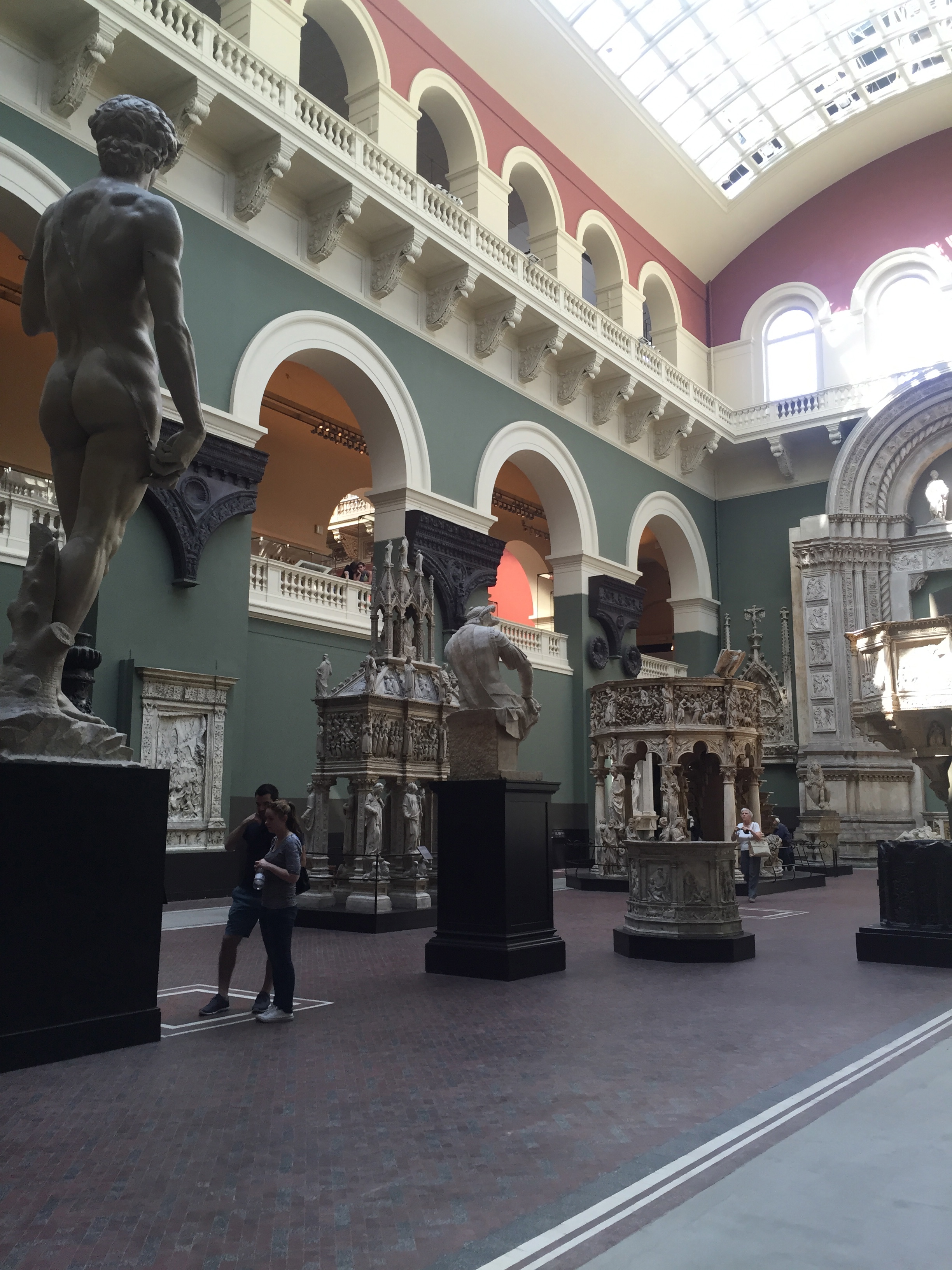 As someone interested in the Italian Renaissance, I was most interested in visiting the Victoria & Albert Museum (abbreviated as the V&A), which has a large collection of objects from that period. Founded in 1852 and named for Queen Victoria and Prince Albert, the museum’s inception is linked to the Great Exhibition of 1851, which showcased international exhibitions of cultural artifacts and manufacturing. Today, it houses one of the largest collections of decorative arts objects in the world. I found that in London works of art are largely separated based on a 19th century understanding of a hierarchy of art: the National Gallery houses paintings, considered “High Art,” while the V&A houses decorative arts and objects associated with design, or objects that are meant to be both aesthetically pleasing and functional.