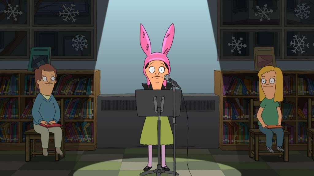Coming in last place is an episode where the Belcher kids accidentally insult a mall Santa and must perform an ice capades show to be placed back on the nice list. The jokes are funny in this one, but the plot is slow-going, so, while it was fun to watch the first time around, I don’t gravitate back to watch it. I will say that I do always enjoy watching Louise believe in childish things like Santa since she has adult tendencies most of the time.