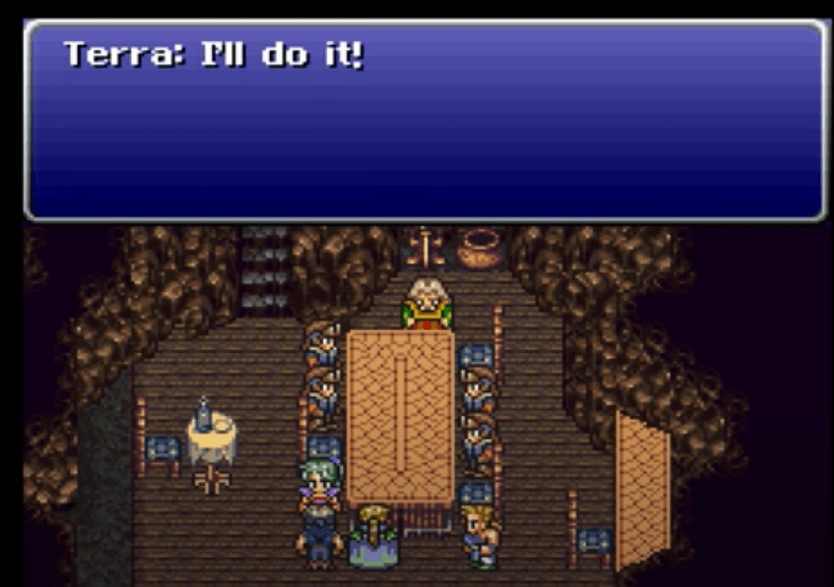 Final Fantasy VI touts itself as an ensemble piece, weaving a complex and nuanced good-versus-evil tale about a war between magic and technology. The game boasts fourteen playable characters, (the most ever seen in a Final Fantasy game) each with rich character backstories that are subtly peppered throughout the game. However, for the first time in franchise history, the protagonists of the story are women: Terra and Celes. Despite fronting as an ensemble, players of the game can clearly see how Terra and Celes’s characters drive the narrative and emotional arcs of the story forward.