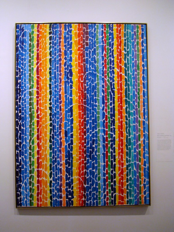Wind, Sunshine and Flowers by Alma Thomas, 1968. Thomas takes an abstract approach as she depicts the natural elements in an abstract way. Here, the idea of nature comes to life amongst repetitive, colorful, columnar brushstrokes. She engages negative space in the white borders around the brushstrokes, which form semicircles and represent wind delicately swaying the colorful abundance of flowers. Thomas was a firm believer in focusing her paintings around color, stating that “…color is life. Light is the mother of color. Light reveals to us the spirit and living soul of the world through colors.” Her insightful approach as an artist, and this painting, are perfect ways to welcome the spring season.