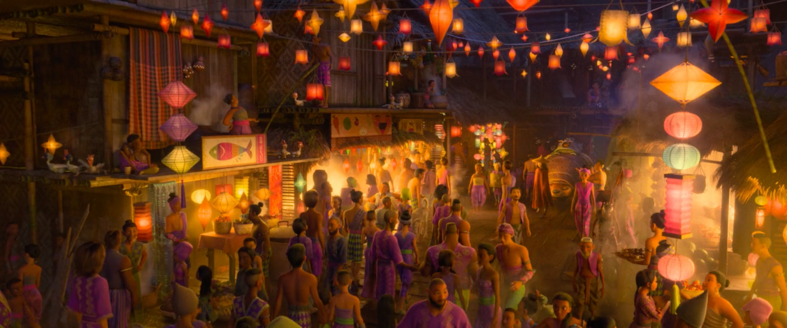 Encanto chooses to set its entire story in one location: Casita, their magical house. Rarely do the events of the story stray too far from Casita, which is a smart storytelling choice. This allows Casita to feel like a member of the Madrigal family, deeply entrenched in the history and struggles that all the characters underwent, from Abuela’s journey all the way down to Mirabel’s. Each of the members of the family Madrigal have a personal connection to Casita, which are explored in the film, some in more depth than others. All of the members of the family (except Mirabel) have their own special room. When Antonio receives his Gift, there is a sequence of his room turning into a safe haven for critters to compliment his ability to talk to them. Isabela’s room is a beautiful, perfectly arranged bed of flowers, which complements her expectations of being the golden child. It is satisfying to see her redecorate her room and come out of her shell during her song. And finally, Bruno’s room is a dark, creepy cave filled with sand, which reveals his skittish nature and introverted personality. The viewer can see that Casita goes out of its way to fit the needs of every family member, and their rooms are a reflection of their personalities and Gifts. Though the film doesn’t show us every room in Casita, it can be inferred that the other rooms are as unique as the ones the film spends time in. Overall, focusing on one location allows the story to really flesh out its setting and make it feel alive and lived in. Raya, on the other hand, takes place in a world that is way too complex for its runtime. To its credit, the worldbuilding in Raya and the Last Dragon is awesome. The fictional kingdom of Kumundra has a lot of potential, and each of the five kingdoms has a lot of unique personality to them. It is also interesting to include a timeskip as a storytelling device in Raya, and to explore how strife and war can negatively affect how a country coexists. It is reminiscent of a world like Avatar: The Last Airbender. The problem is that Avatar is a TV show that had forty-ish hours to flesh out its worldbuilding. Raya only had two hours. As a result, all of the kingdoms felt underdeveloped, and it was difficult to feel invested in its world. There is a sequence midway through the film where Raya, the titular last dragon Sisu, and their third companion Boun go to the market based shanty-town of Talon on a heist mission to collect one of the dragon gems. This sequence had the potential to be amazing, as underbelly shanty-towns are perfect for shenanigans and memorable character interactions. However, the Talon portion of the film lasted about a half an hour, and every story beat felt rushed or too focused on the movie’s middling attempts at humor. It was hard to care about the kingdom of Talon as a result. It did not feel lived in, since we left as soon as we arrived.